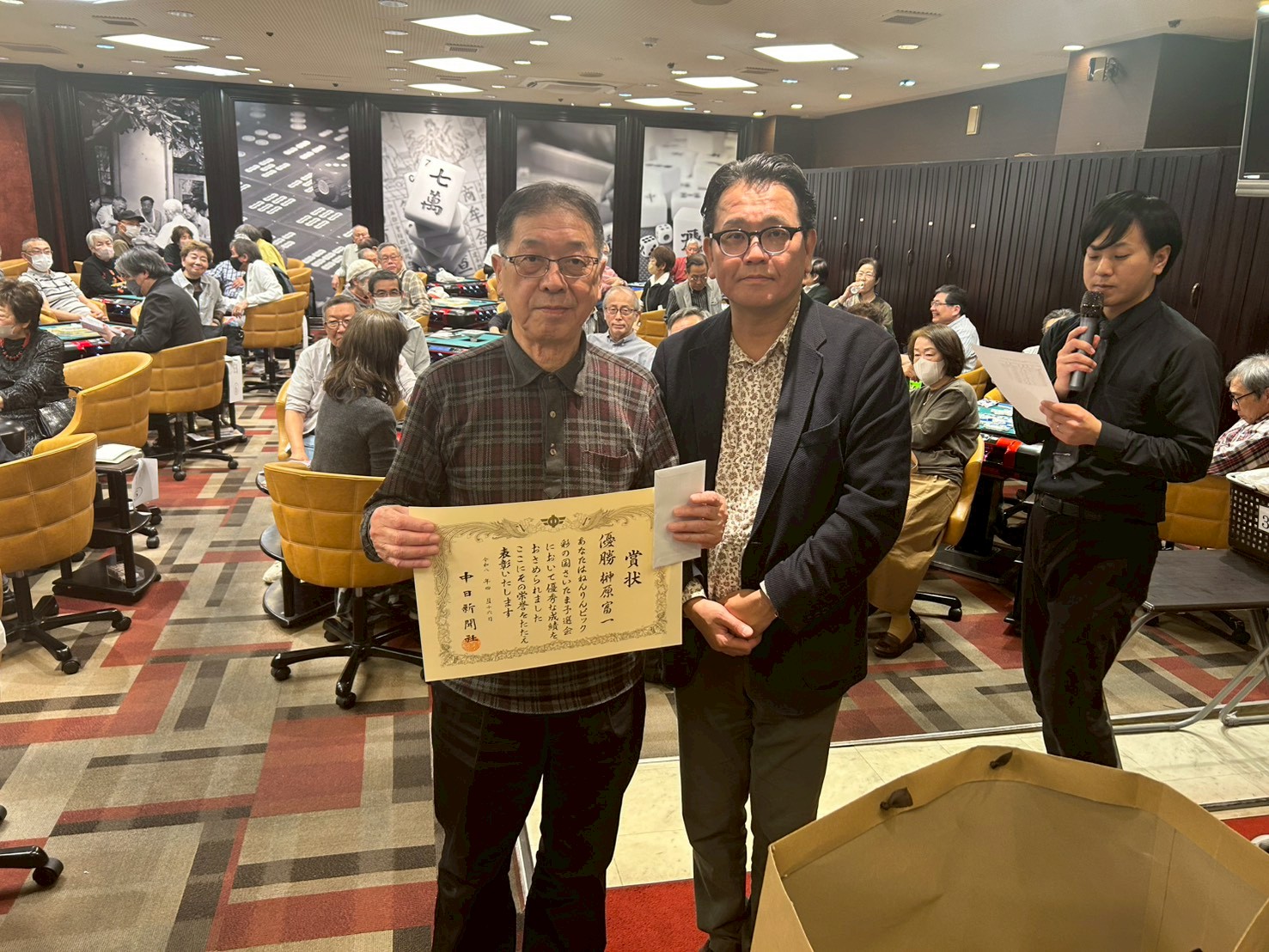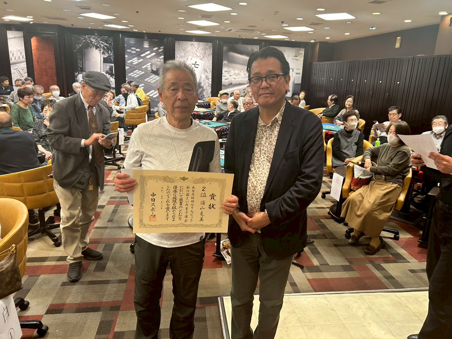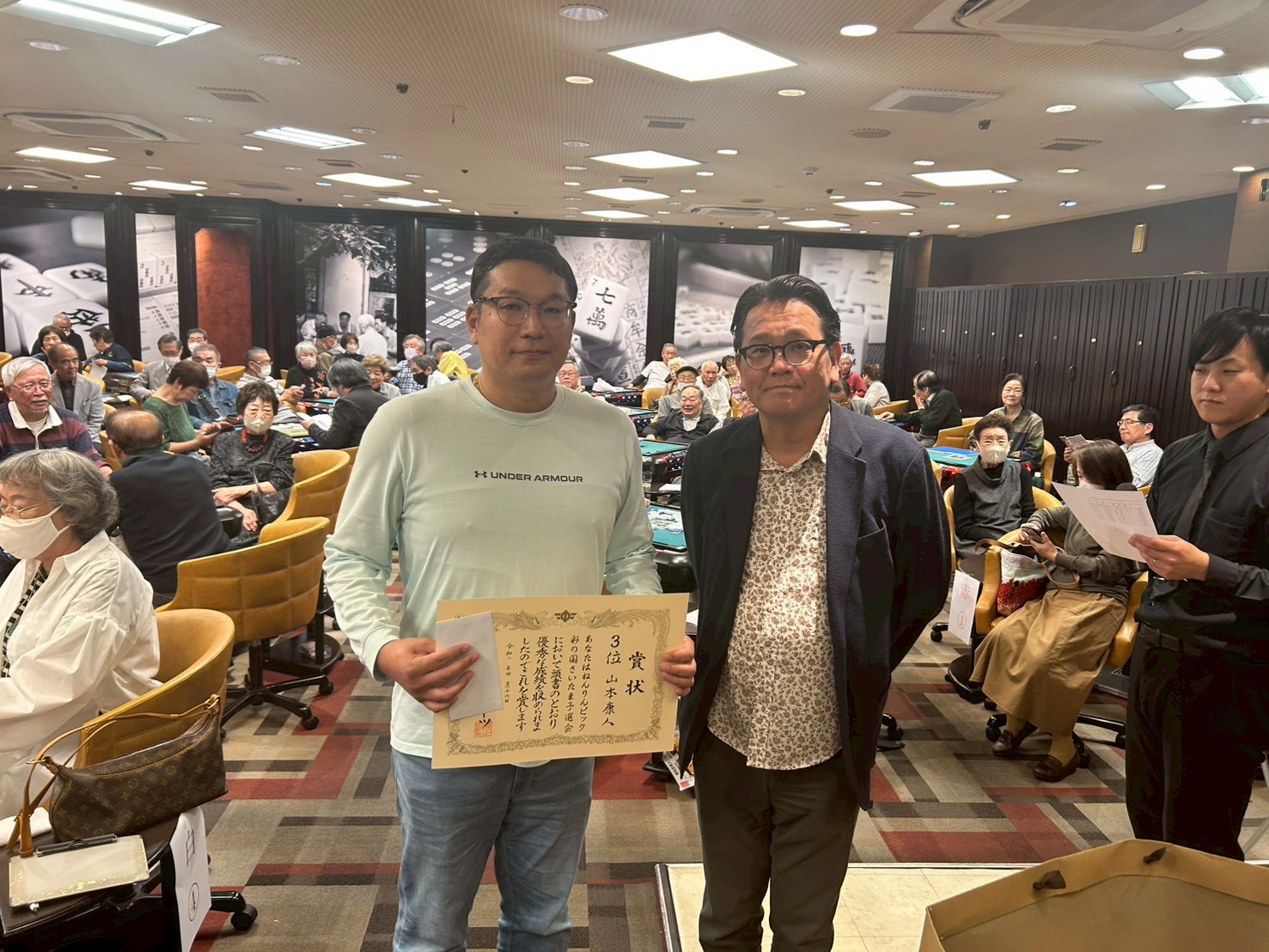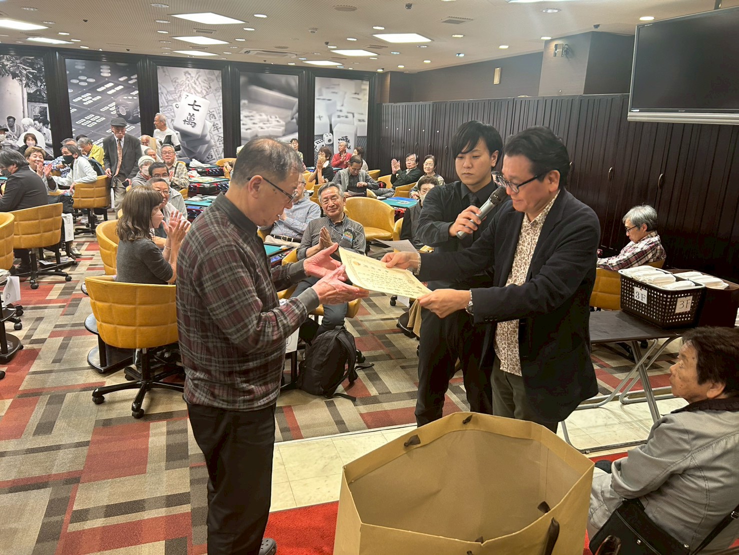 2026-04-27 ねんりんピック埼玉2026予選会 愛知県・名古屋市 結果 Tweet 令和8年4月26日(日) 『琥珀』琥珀ビル3F 【ねんりんピック埼玉2026予選会 愛知県・名古屋市 結果】成績表 開会挨拶 愛知県麻雀段位審査会 駒井 淳 会長挨拶 愛知県麻雀段位審査会 駒井 淳 競技説明 愛知県麻雀段位審査会 内山 暁 会場風景 会場風景 会場風景 会場風景 役満 四暗刻 役満 小四喜 優勝 榊原 富一 さん 優勝 榊原 富一 さん 2位 須山 克美 さん 2位 須山 克美 さん 3位 山本康人 さん 3位 山本康人 さん 閉会挨拶 日本スポーツ麻雀協会会長 小川 義美 SNSでもご購読できます。 一般社団法人全国麻雀段位審査会・麻雀検定 一般社団法人全国麻雀段位審査会・麻雀検定 一般社団法人全国麻雀段位審査会・麻雀検定